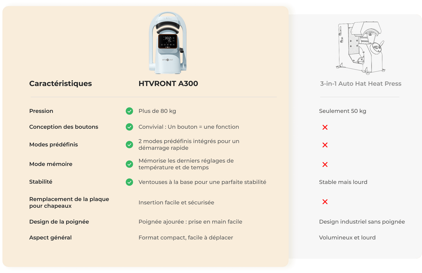 HTVRONT A300 — Votre raccourci sécurisé pour le pressage de chapeaux